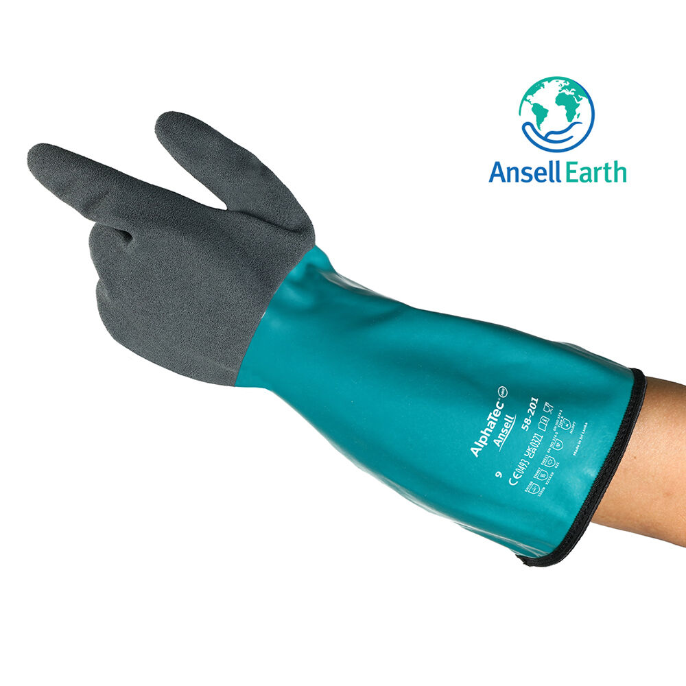 AlphaTec® 58-201 er en robust og allsidig kjemikaliehanske utviklet for krevende industrielle miljøer. Den kombinerer avansert Ansell Grip™ Technology med et nitrilbelegg som gir utmerket beskyttelse mot et bredt spekter av kjemikalier. Hansken er designet for ekstreme temperaturer, og tåler både kulde ned til -40°C og varme opp til 250°C. Den akrylforede innsiden gir komfort og isolasjon, og gjør hansken ideell for både kalde lagre og varme prosesser. Med antistatiske egenskaper, latex- og silikonfri konstruksjon, og miljøvennlig produksjon, er dette et førsteklasses valg for profesjonelle brukere som krever sikkerhet, komfort og bærekraft.