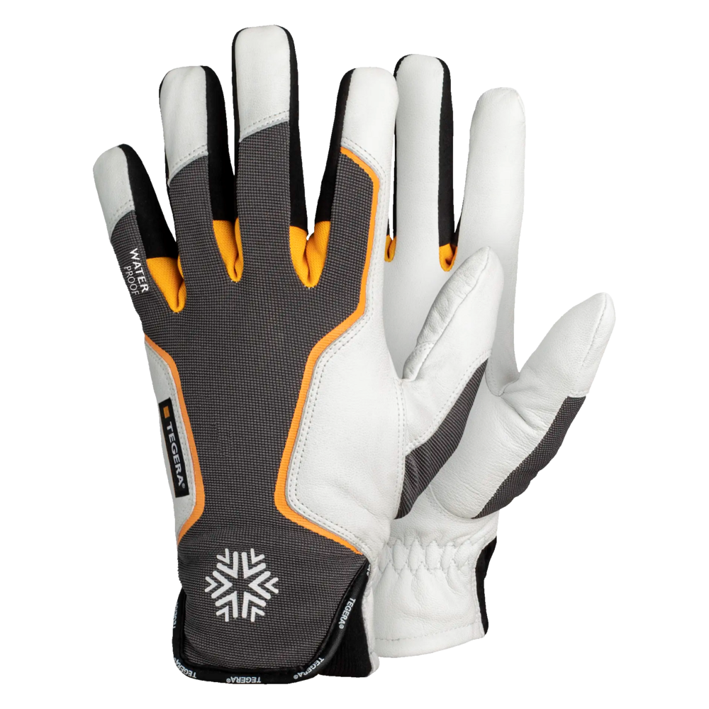TEGERA 7795 er en premium vinterhanske laget av fullnarvet geiteskinn og spandex, med Thinsulate™ 40g-fôr for optimal varmeisolasjon. Hansken er vanntett, fleksibel og gir utmerket fingertuppfølelse. Forsterkede fingre og tommel gir ekstra slitestyrke. Sertifisert i henhold til EN 388 (2111X) og EN 511 (111) for mekanisk og kuldebeskyttelse. Ideell for arbeid i kalde og våte miljøer.
